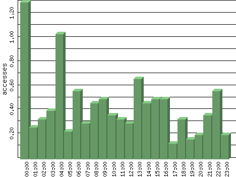 | Hour | Accesses | % | Bytes | % | Visits | % | Bits per Sec | Bytes per Sec |
