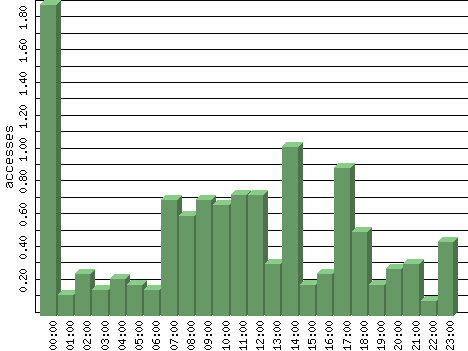 | Hour | Accesses | % | Bytes | % | Visits | % | Bits per Sec | Bytes per Sec |