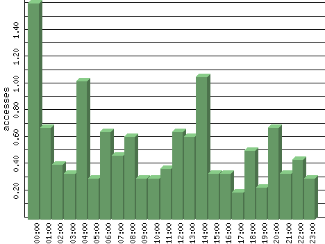 | Hour | Accesses | % | Bytes | % | Visits | % | Bits per Sec | Bytes per Sec |