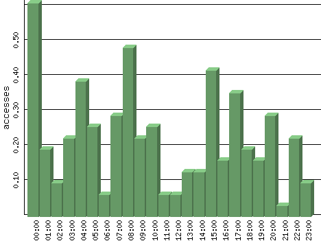 | Hour | Accesses | % | Bytes | % | Visits | % | Bits per Sec | Bytes per Sec |