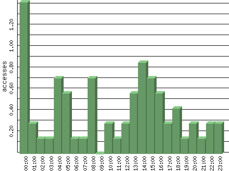 | Hour | Accesses | % | Bytes | % | Visits | % | Bits per Sec | Bytes per Sec |