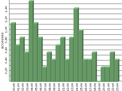 | Hour | Accesses | % | Bytes | % | Visits | % | Bits per Sec | Bytes per Sec |