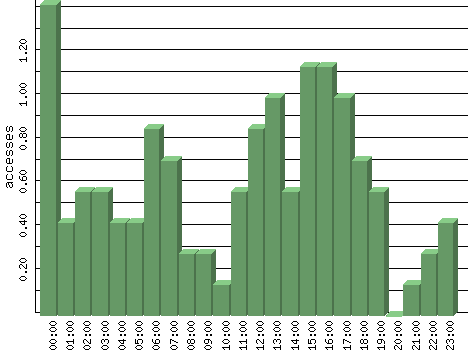 | Hour | Accesses | % | Bytes | % | Visits | % | Bits per Sec | Bytes per Sec |