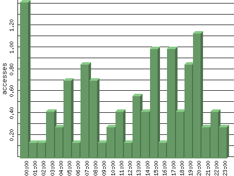 | Hour | Accesses | % | Bytes | % | Visits | % | Bits per Sec | Bytes per Sec |