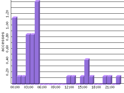 | Hour | Accesses | % | Bytes | % | Bits/Sec | Bytes/Sec |