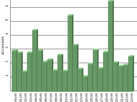 | Hour | Accesses | % | Bytes | % | Visits | % | Bits per Sec | Bytes per Sec |