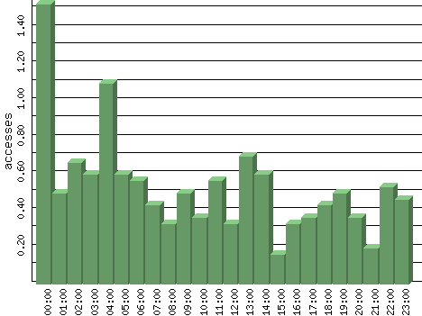| Hour | Accesses | % | Bytes | % | Visits | % | Bits per Sec | Bytes per Sec |