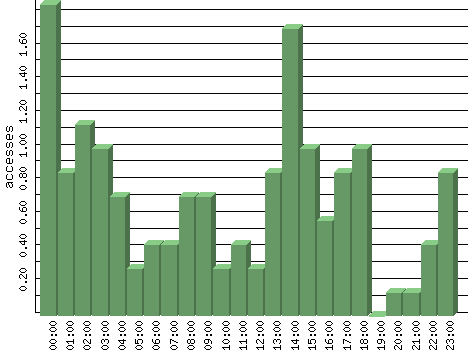 | Hour | Accesses | % | Bytes | % | Visits | % | Bits per Sec | Bytes per Sec |